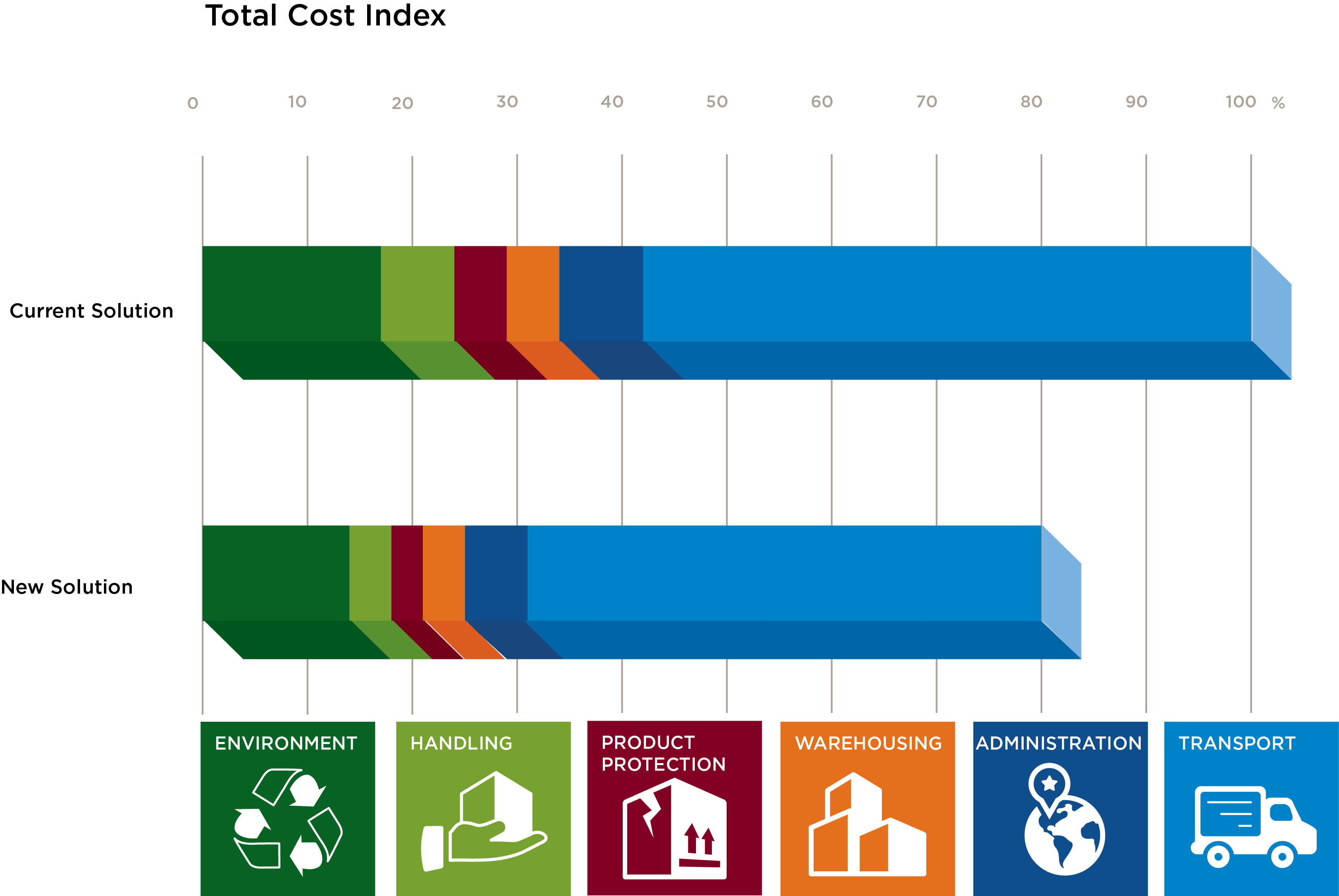 这意味着,包装的成本因素影响您的供应链的各个阶段,从生产到操作、分配、运输阶段和到最终用户的交付。包装设计不仅可以帮助您控制总物流成本,而且能减少涉及到从管理、人工、运输,到销售损失、货损、品牌价值和形象等各个方面的不必要成本。